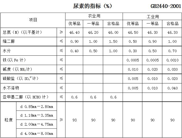 根據GB2440-2001,也就是尿素的國标,裏面的指标可以更加清楚的看出二者的區别。