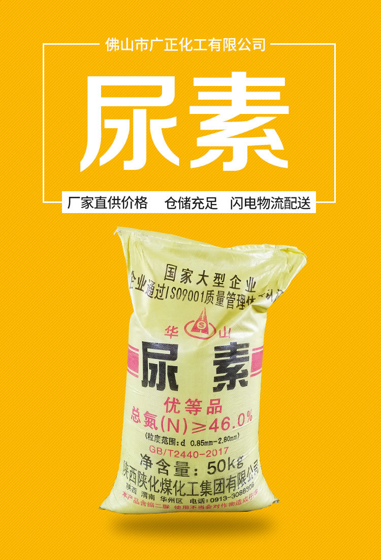 廣正化工華山牌尿素可大批量批發,量大從優,可以送貨上門,提貨便捷,華山牌尿素好産品不容錯過,電話咨詢: