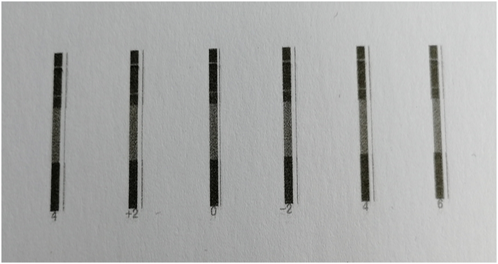 再打印設置種選擇偏差校正--雙向标準--高度打印--選擇-37的參數😝--打印校準圖。如果打印效果出現兩條細線重疊🙂↔️,形成🙂↕️一條很細的線條,這說明沒有校準好,圖中的(0)标準點,根據圖所示在數值輸入出進行數值更改,列;-8兩條細線重疊成一條,即在數值輸入處将數值更改爲-45(數值輸入處原數值👧🏾爲-37),數值調整完畢後請單🧑🏽🎄擊(應用)。