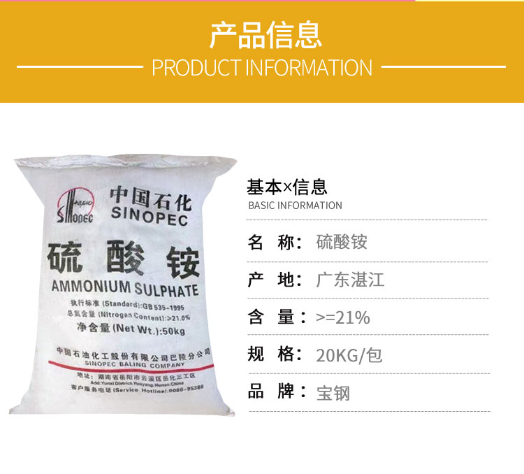 中國石化硫酸铵用途: 工業級 硫酸铵用作肥料,還可用作焊藥、織物防火劑,醫藥上作鹽🙈析劑、滲透壓調節劑等。